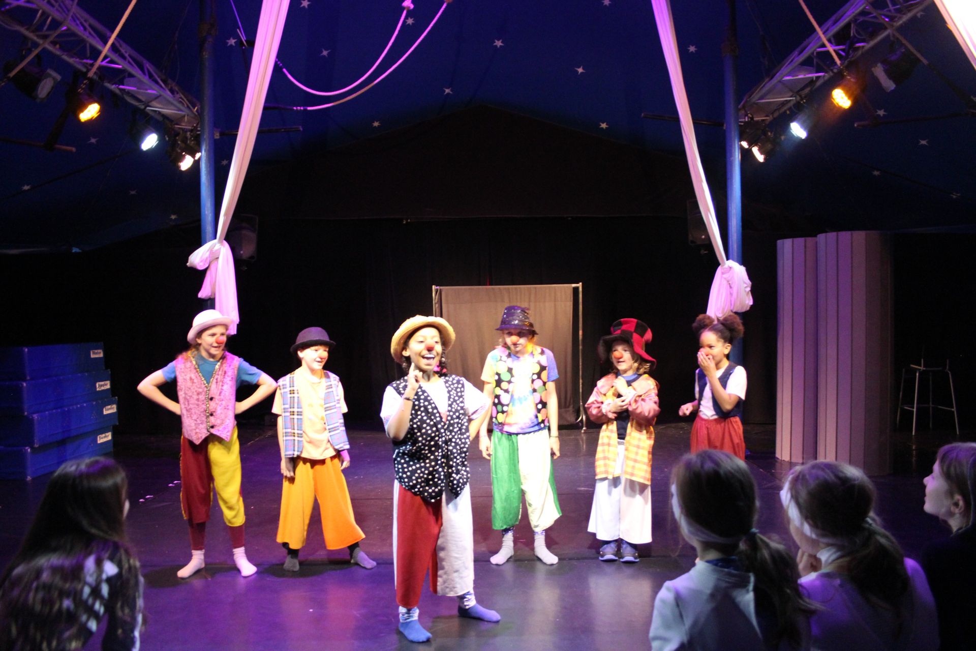 Die Abschlussaufführung des jeweiligen Workshops ist immer Freitags (außer beim verkürzten Osterferienworkshop am Donnerstag) um 14:00 Uhr – Eintritt frei!
